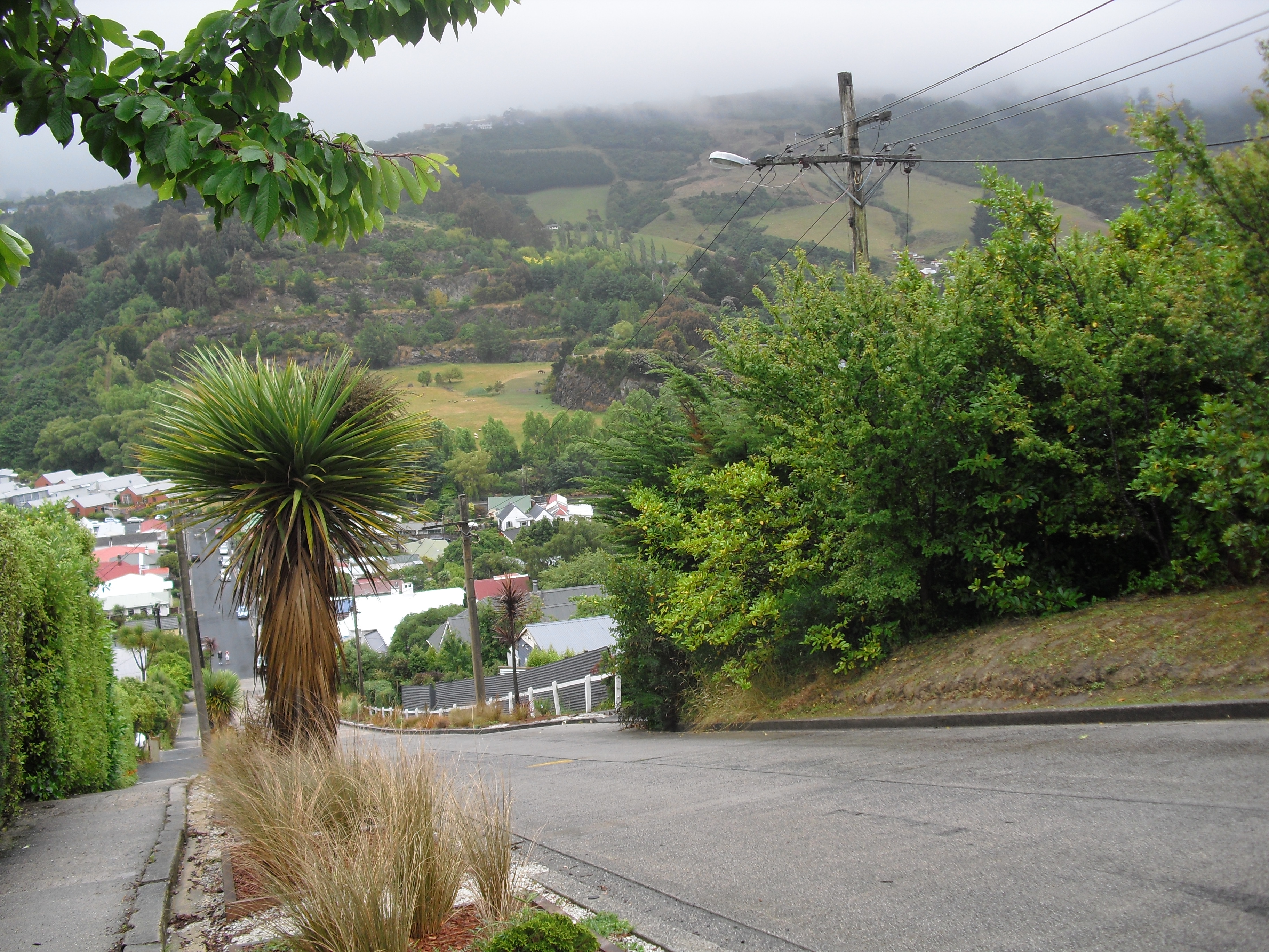Here is a picture that was taken semi-near the steepest gradient. I find that pictures don’t really capture the essence of steep streets, but I tried. The palm tree looks like a dwarf.