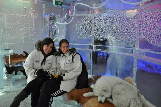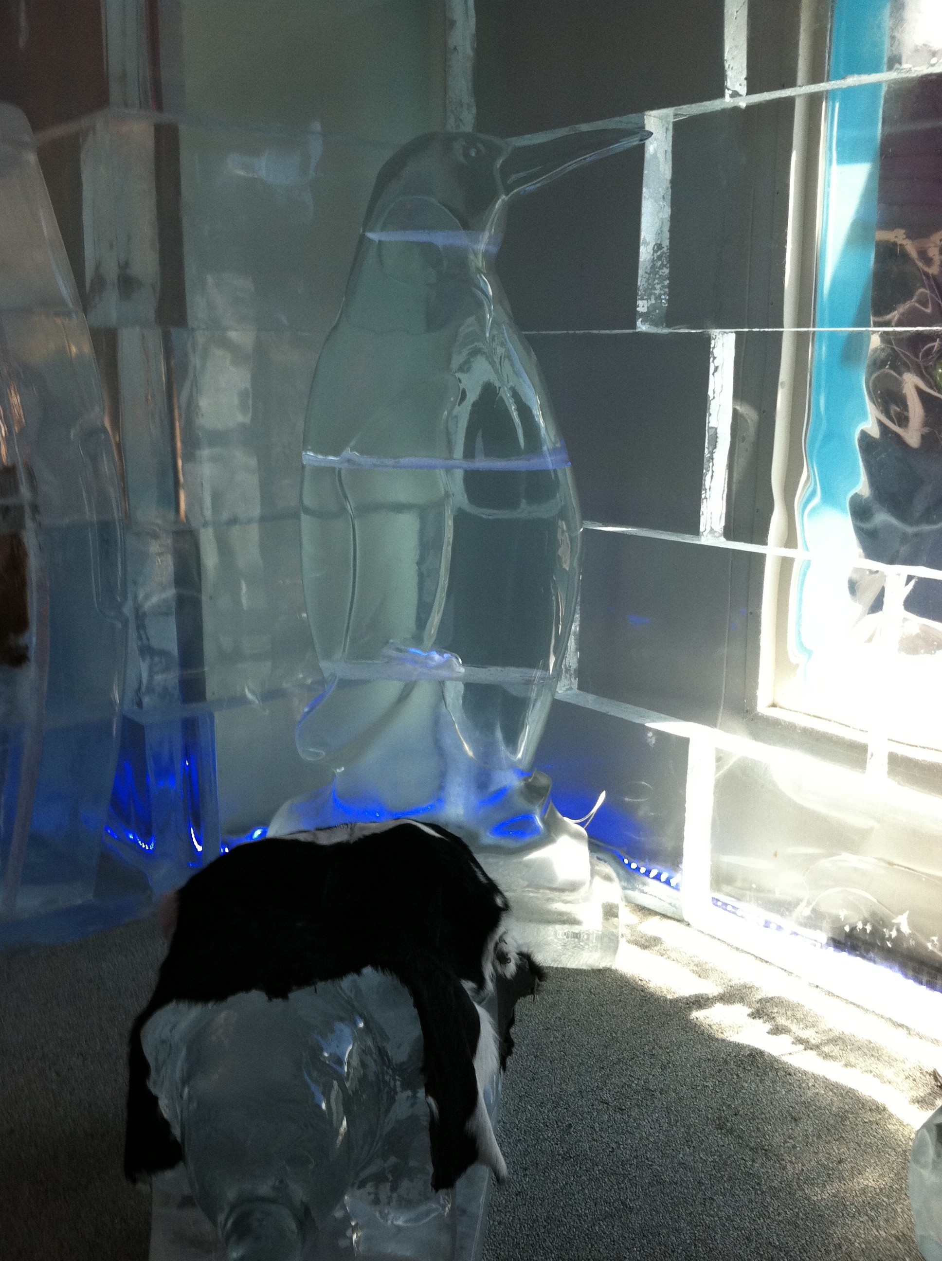 There are other perks, too, of course. The ice sculptures are neat, and the only alcohol served is vodka because of its low freezing temperature (take that, tequila!), and there was a dog there that looked like a polar bear—at least it did to Kirsten who stumbled past the Below Zero ice bar one night en route to the alley bathroom. “Wow, they even went so far as to get a polar bear,” she thought.