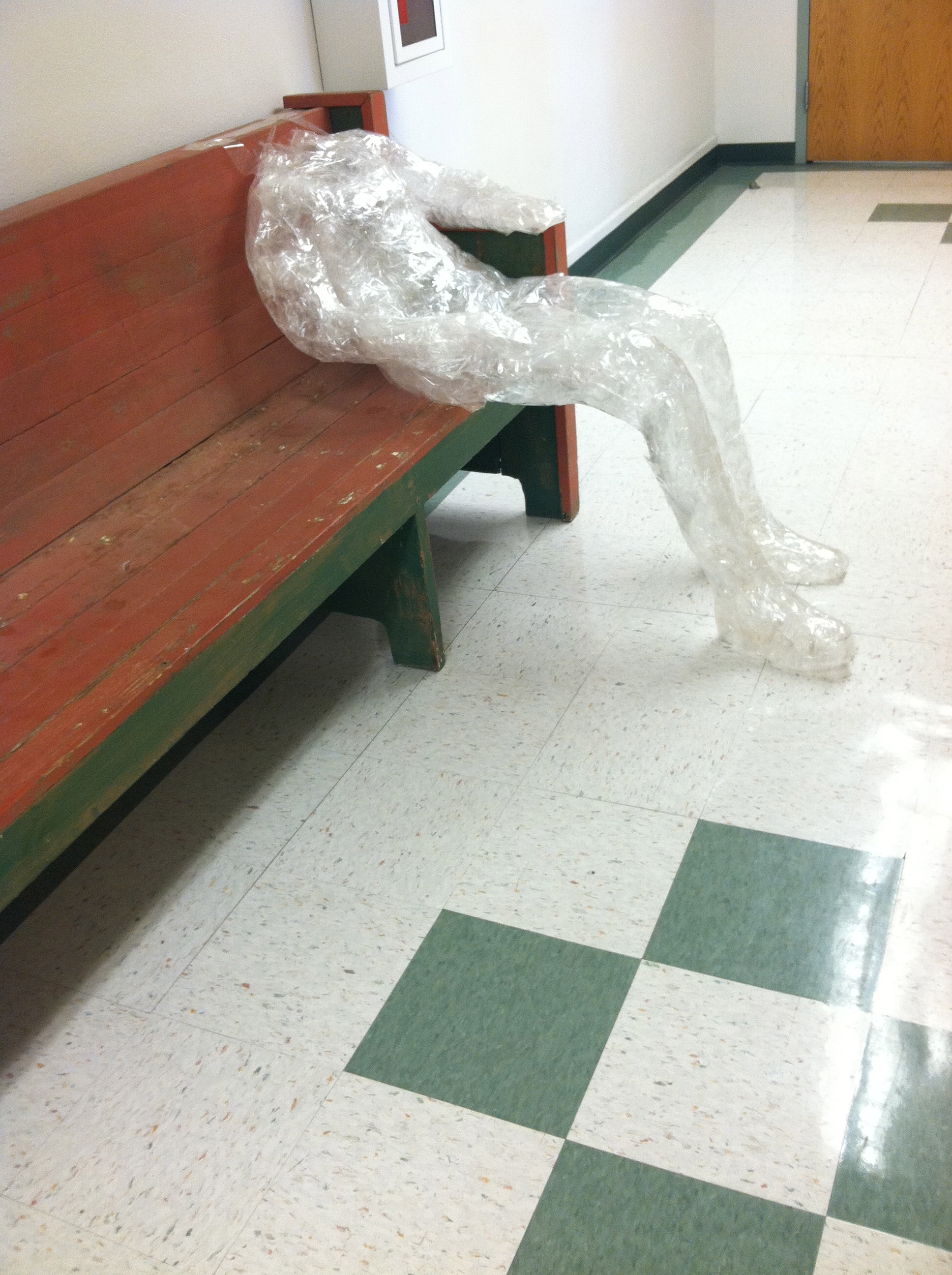 The invisible man has been sitting in the downstairs hallway for quite some time, but he was only recently decapitated. **RIP**