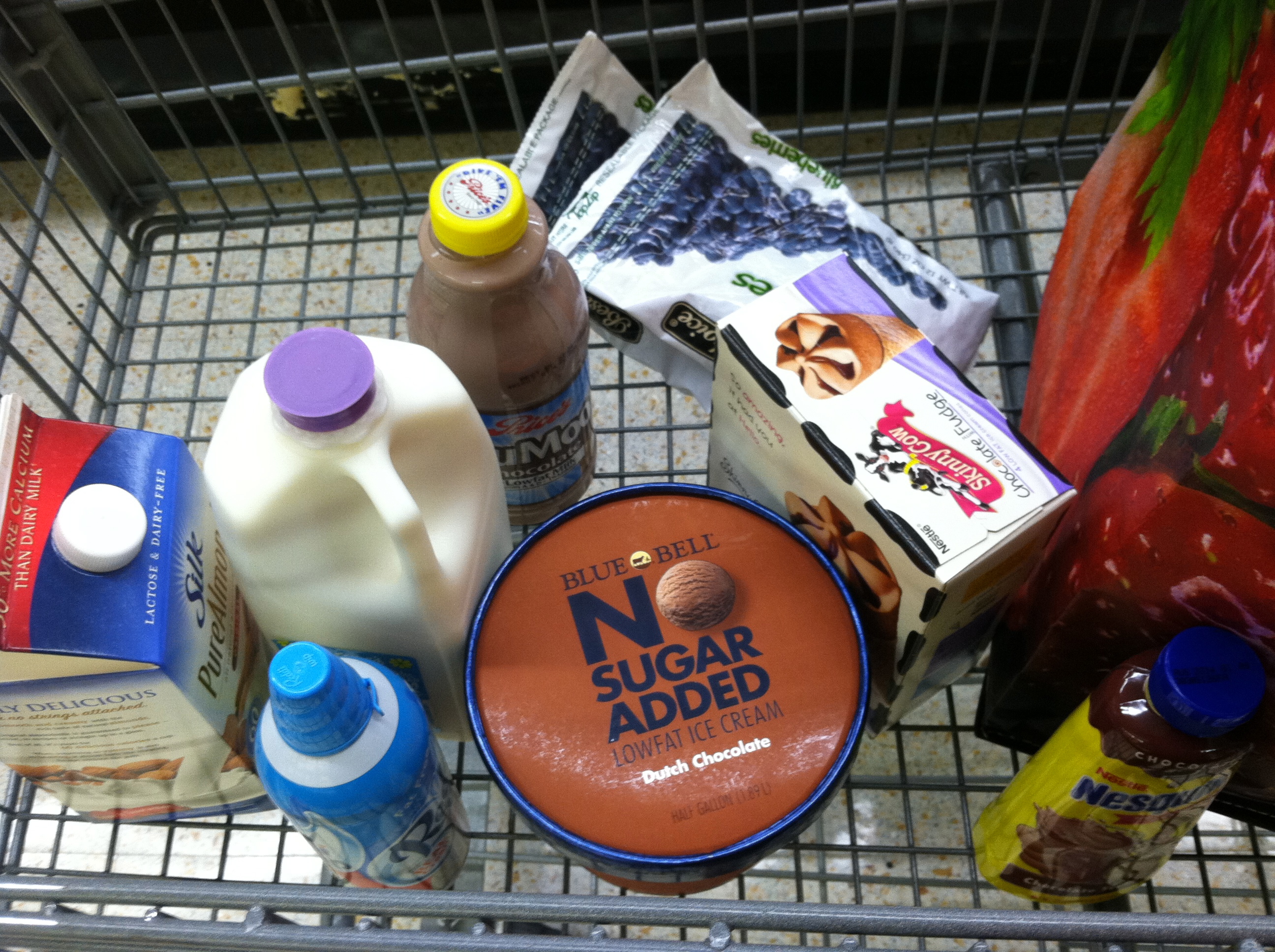 I wonder what the checkout person must think. First dairy and chocolate, then the cat food.