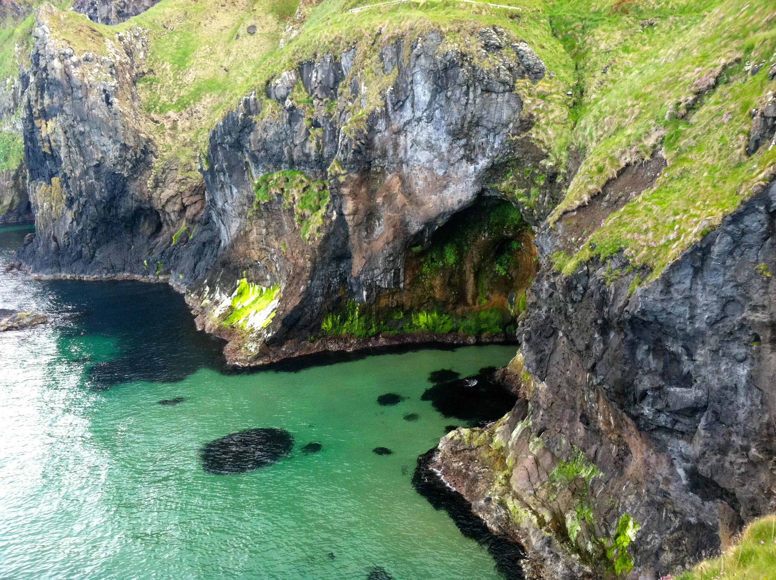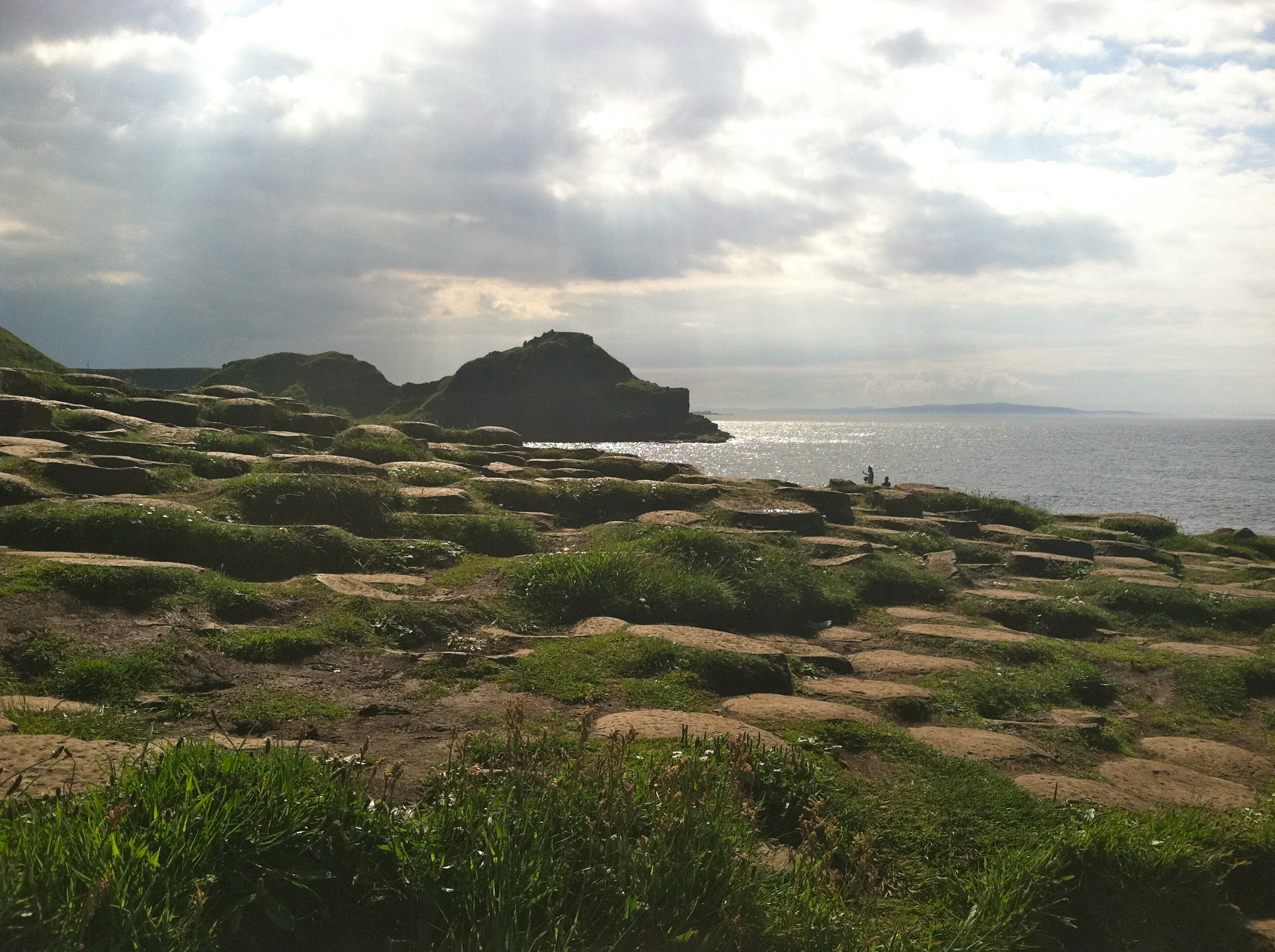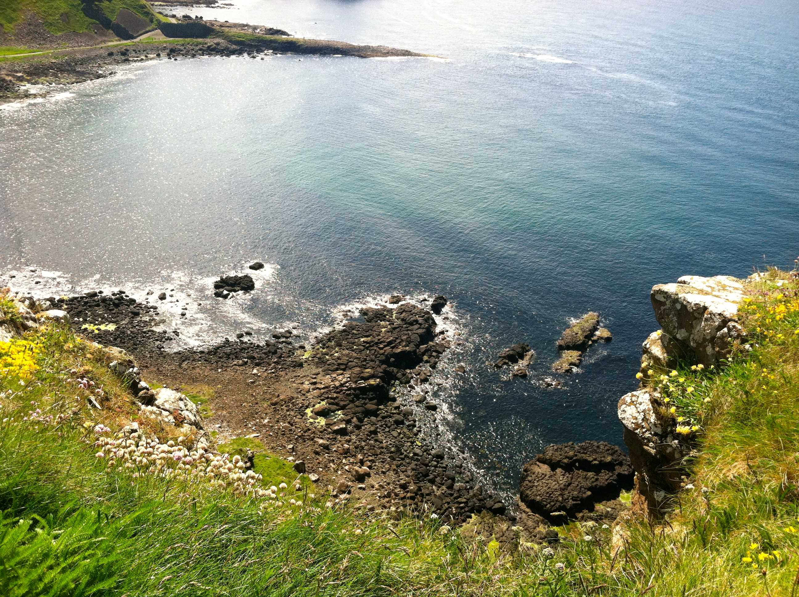 At Giant’s Causeway, there are three walking trails labeled by color: the red, the blue, and the yellow. The blue is the low trail and meanders along the seaside; the red and yellow are the high road. The high road is less traveled (Frost must have taken it); it extends for miles, and it provides absolutely stunning views. Every third word out of Taryn’s or my mouth was “wow!” That could also be because we were partially blinded by chlorophyll-produced coloration—“green,” I believe they call it—that we were not used to seeing coming from the desert.