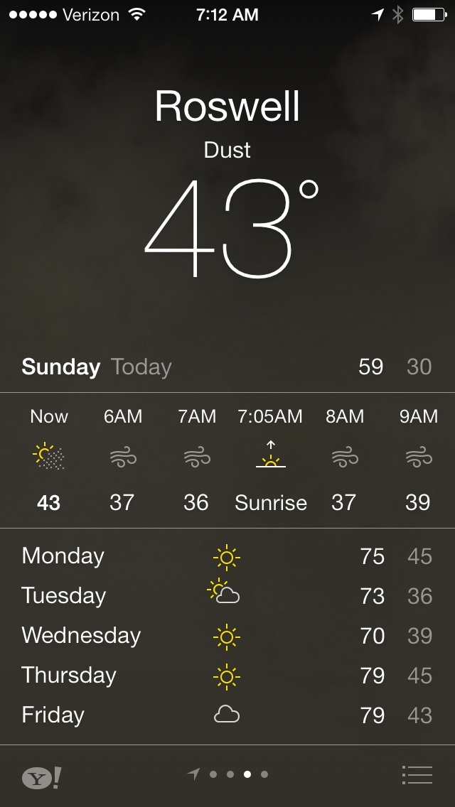 *Spring is the season of Dust in Roswell. If you think I’m lying, look at this forecast from my iPhone: