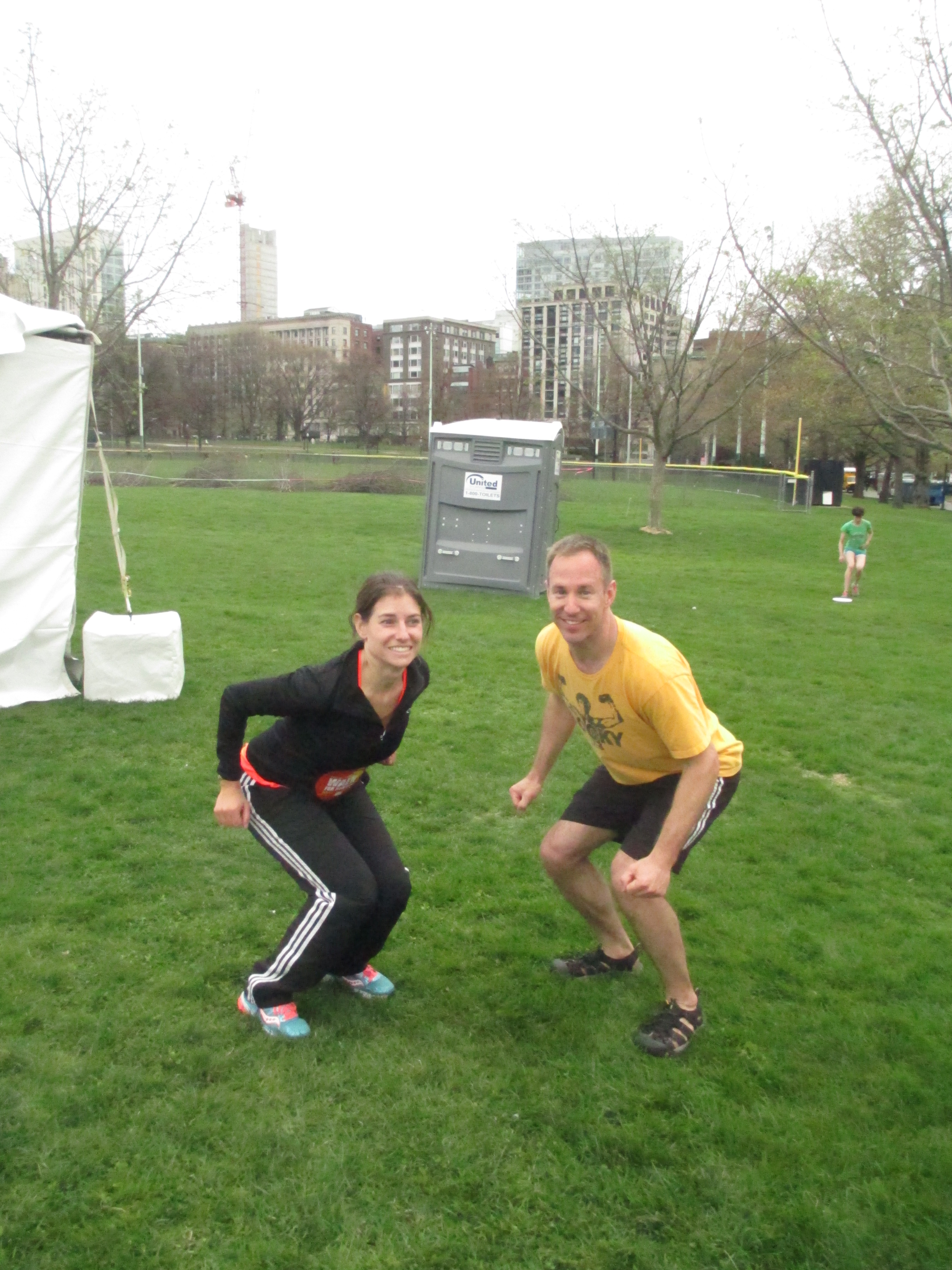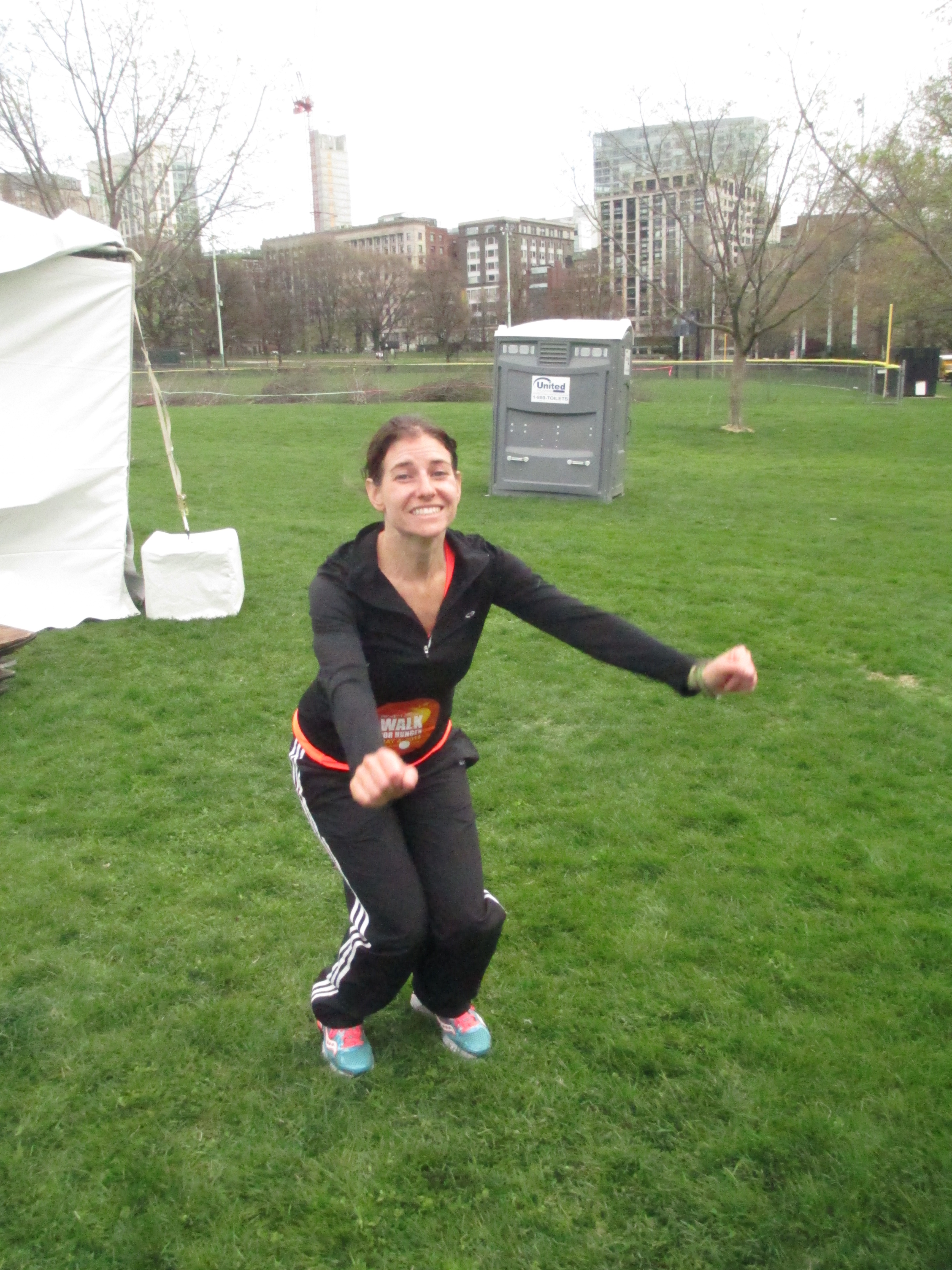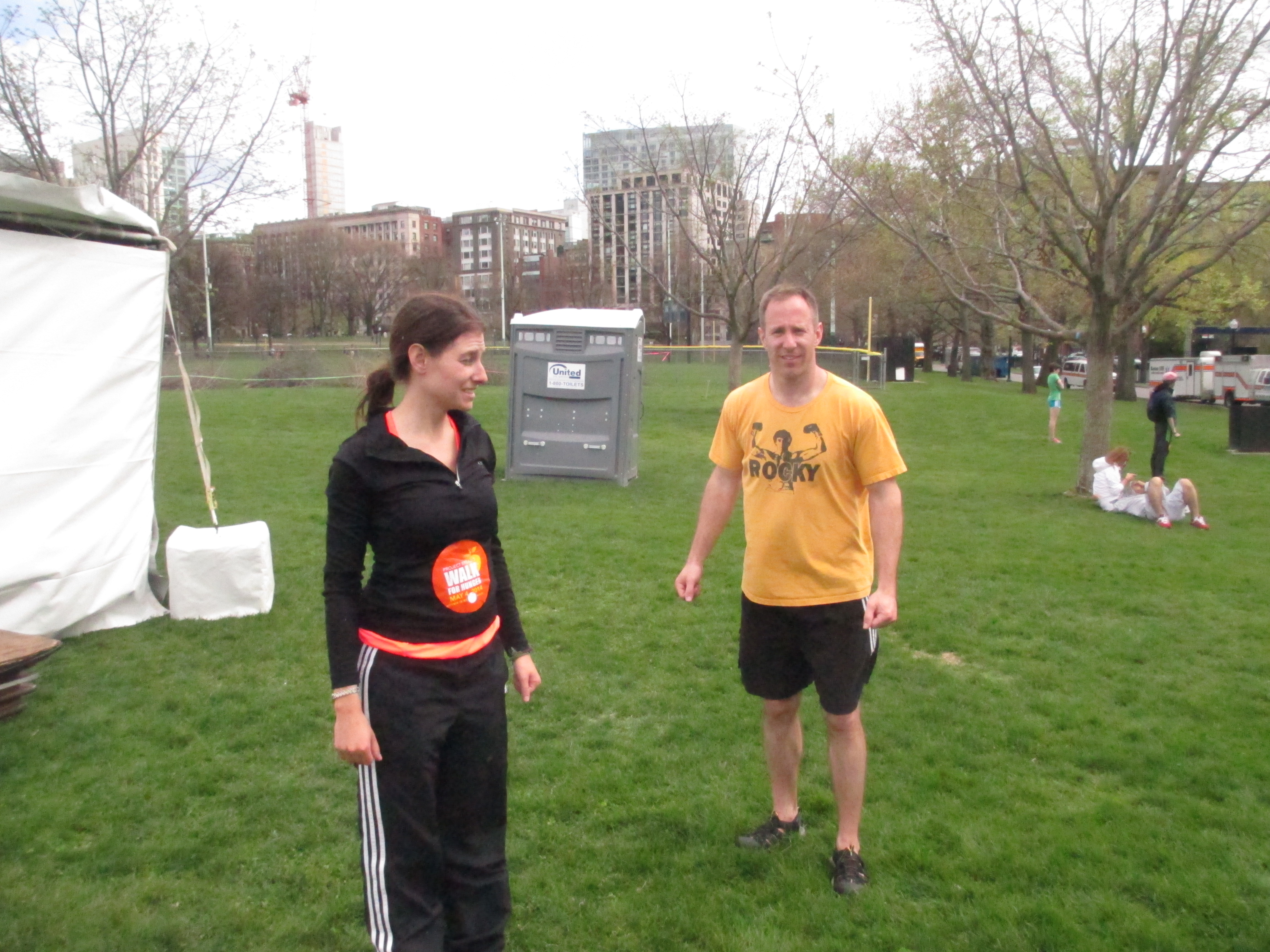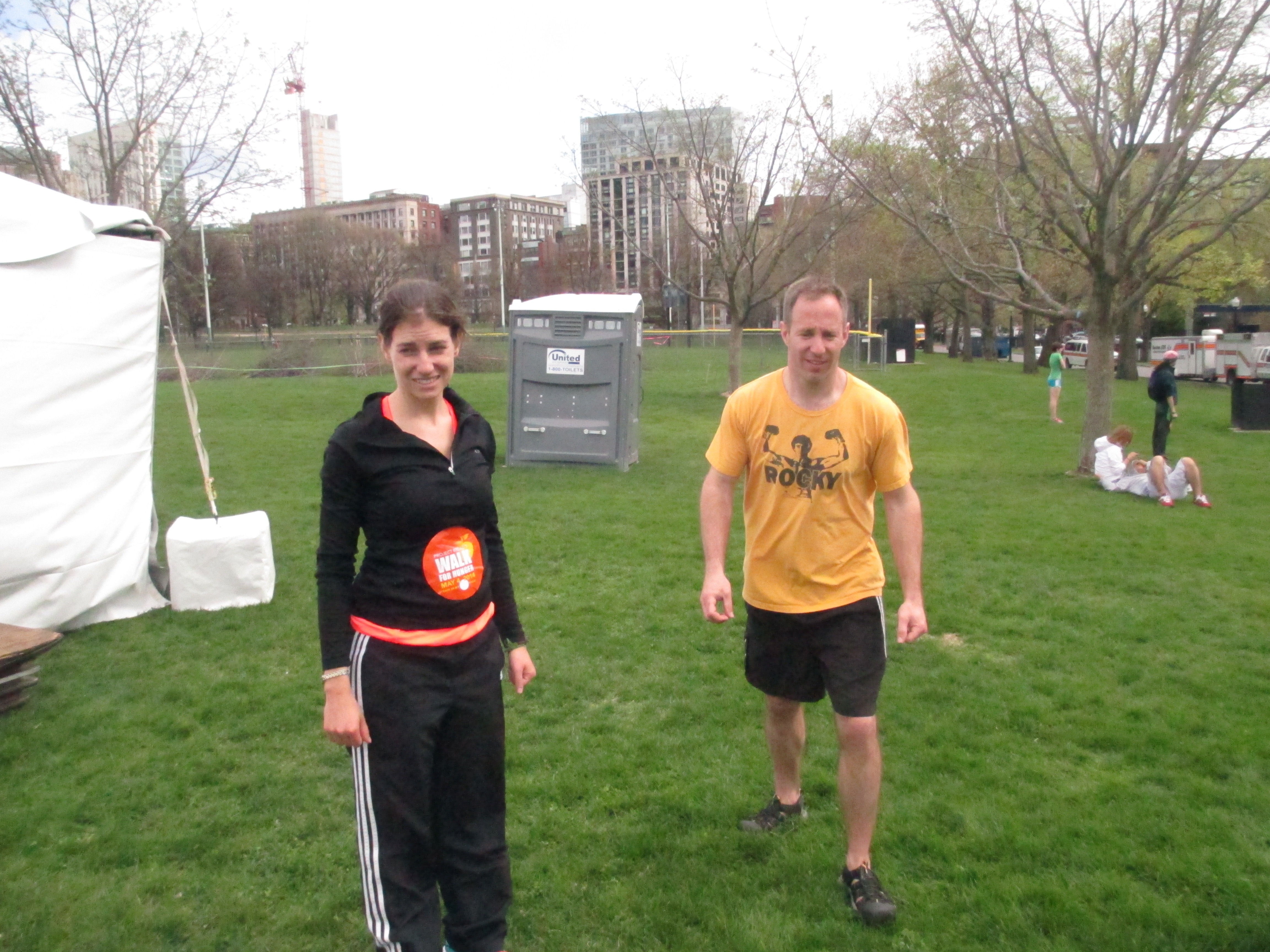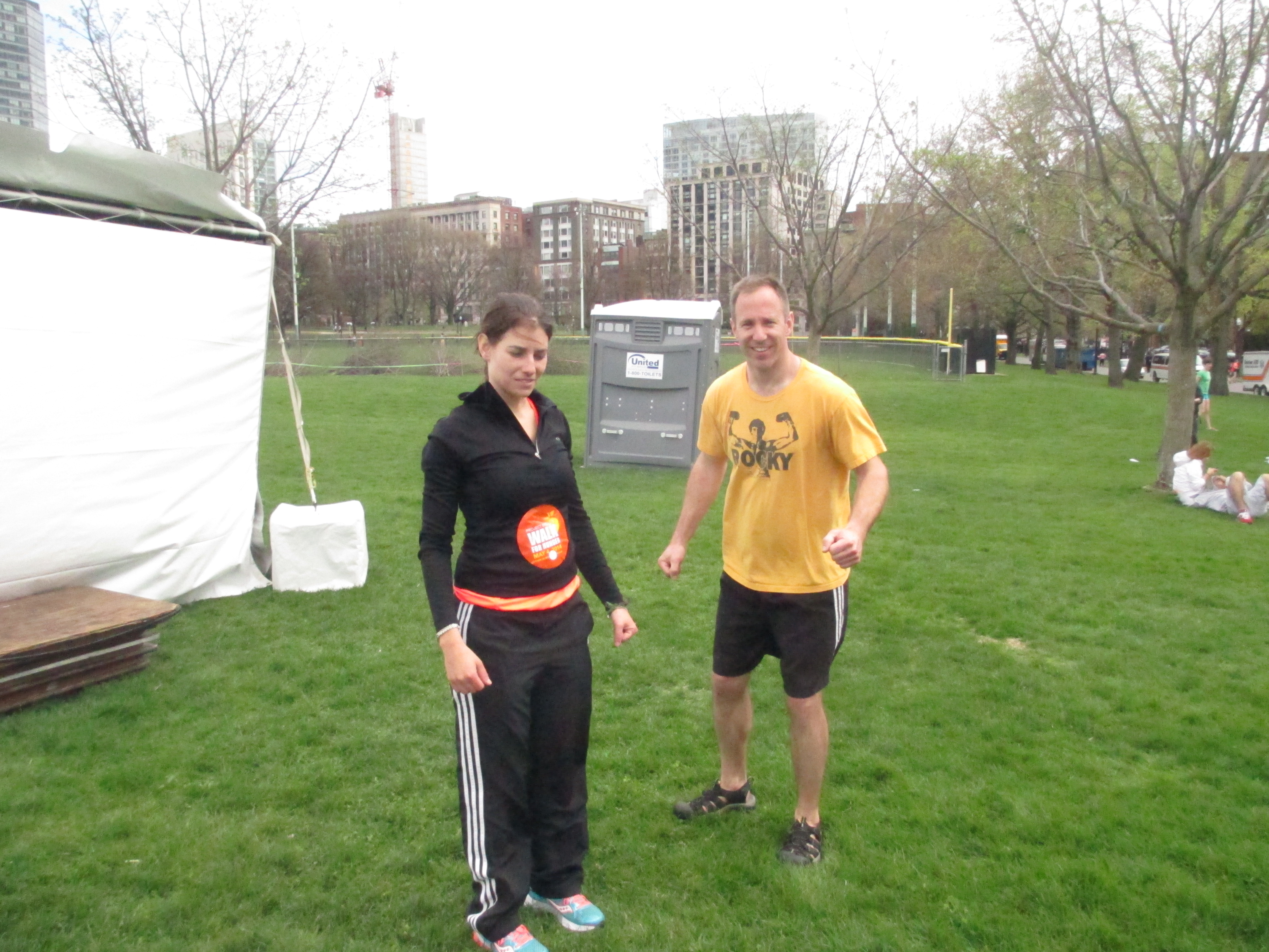 After finishing our 20 mile jaunt through Boston, my friend and I wanted to take a celebratory photo. M-dog* suggested a photo in which the both of us are jumping, so he asked his colleague to take a photo of us in jubilant airborne exultation.