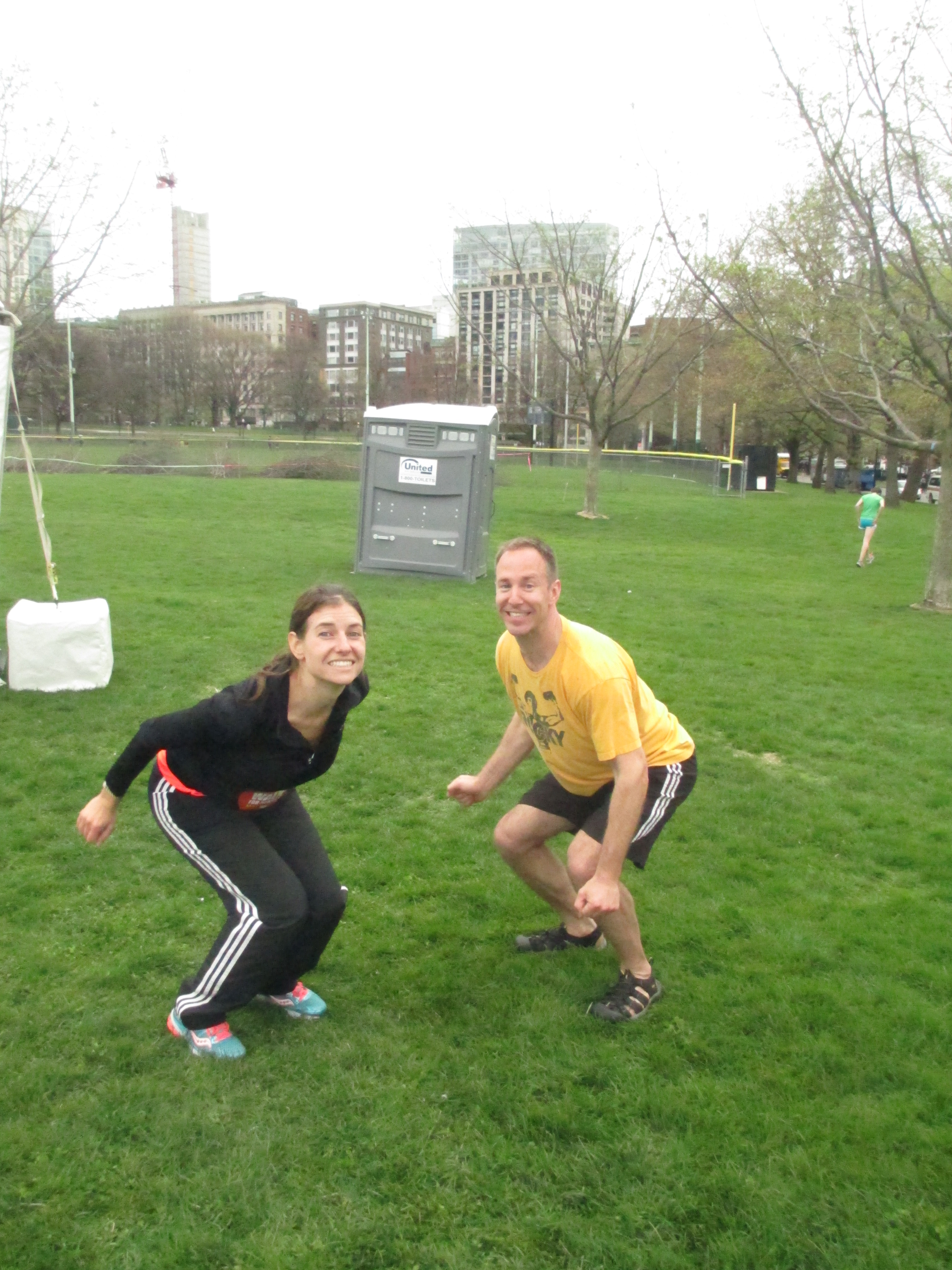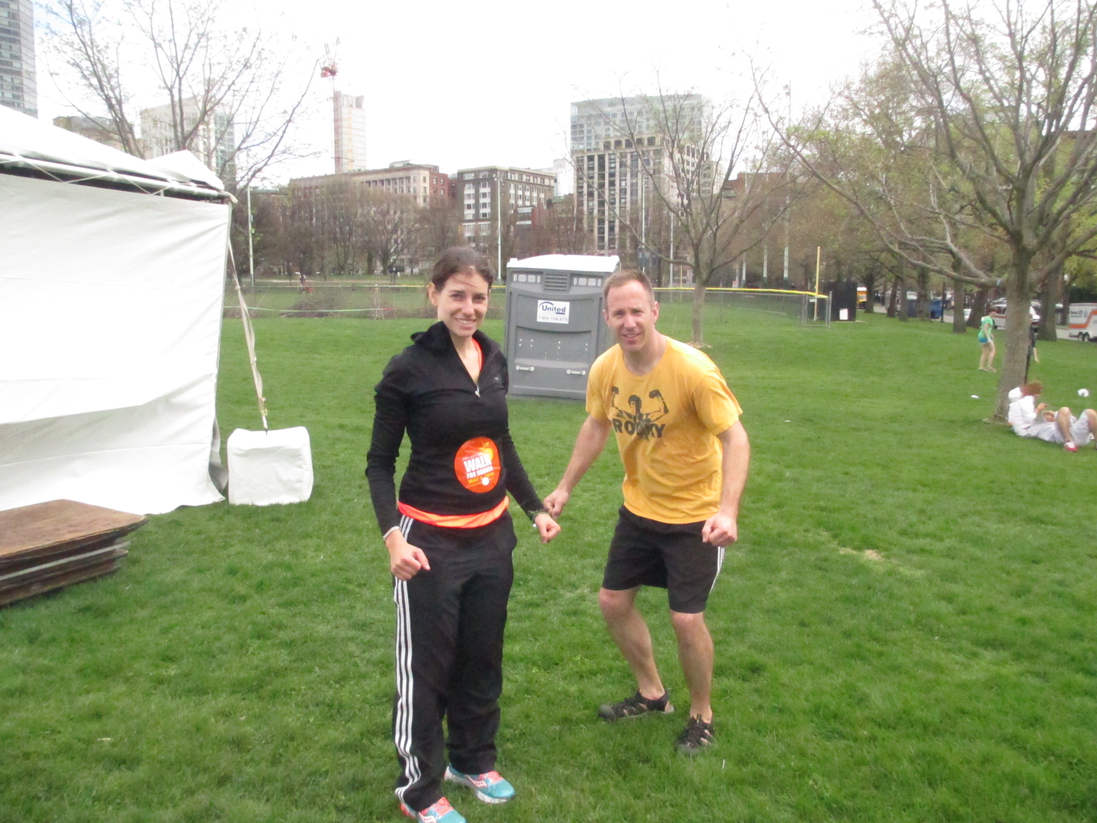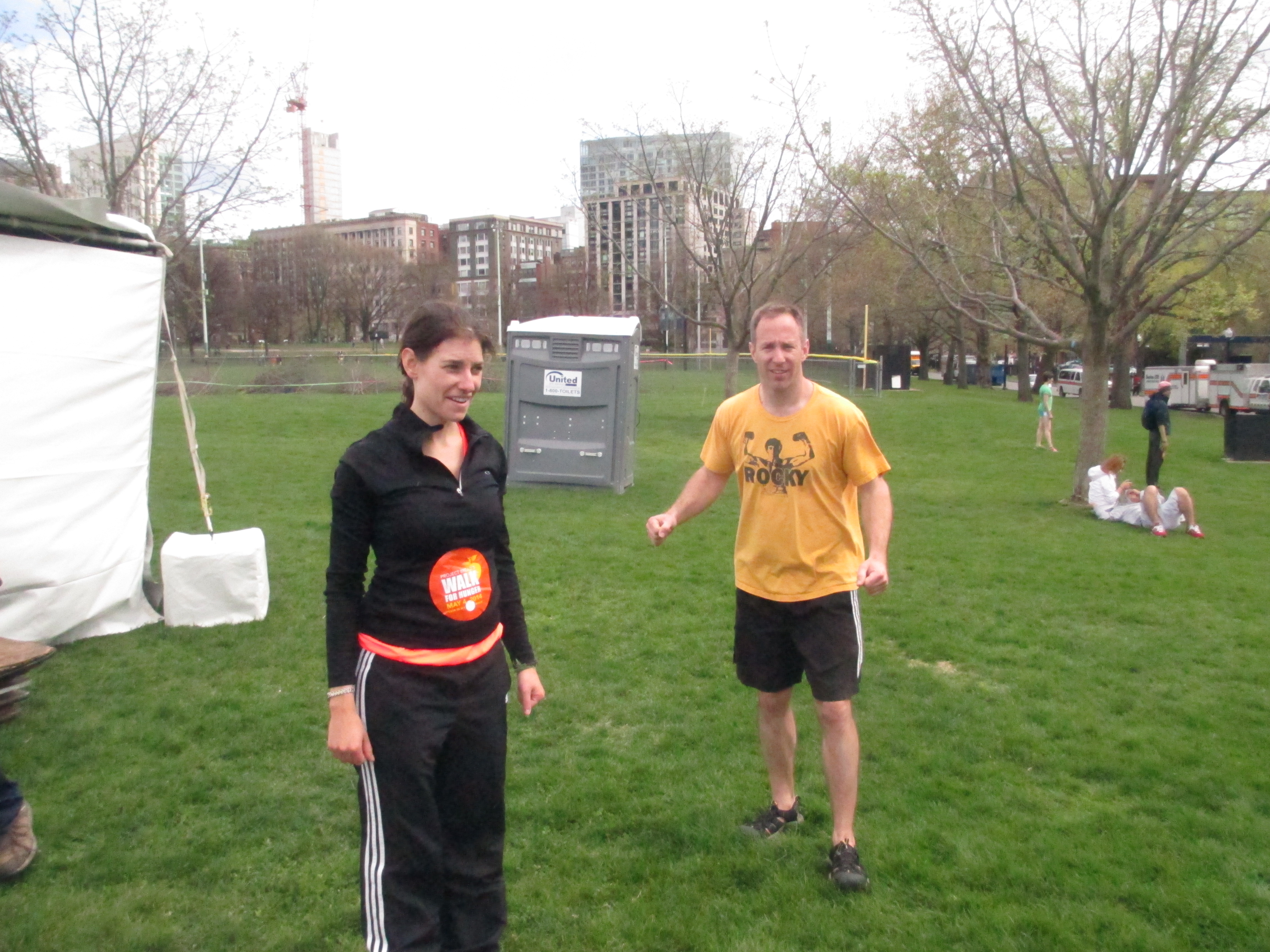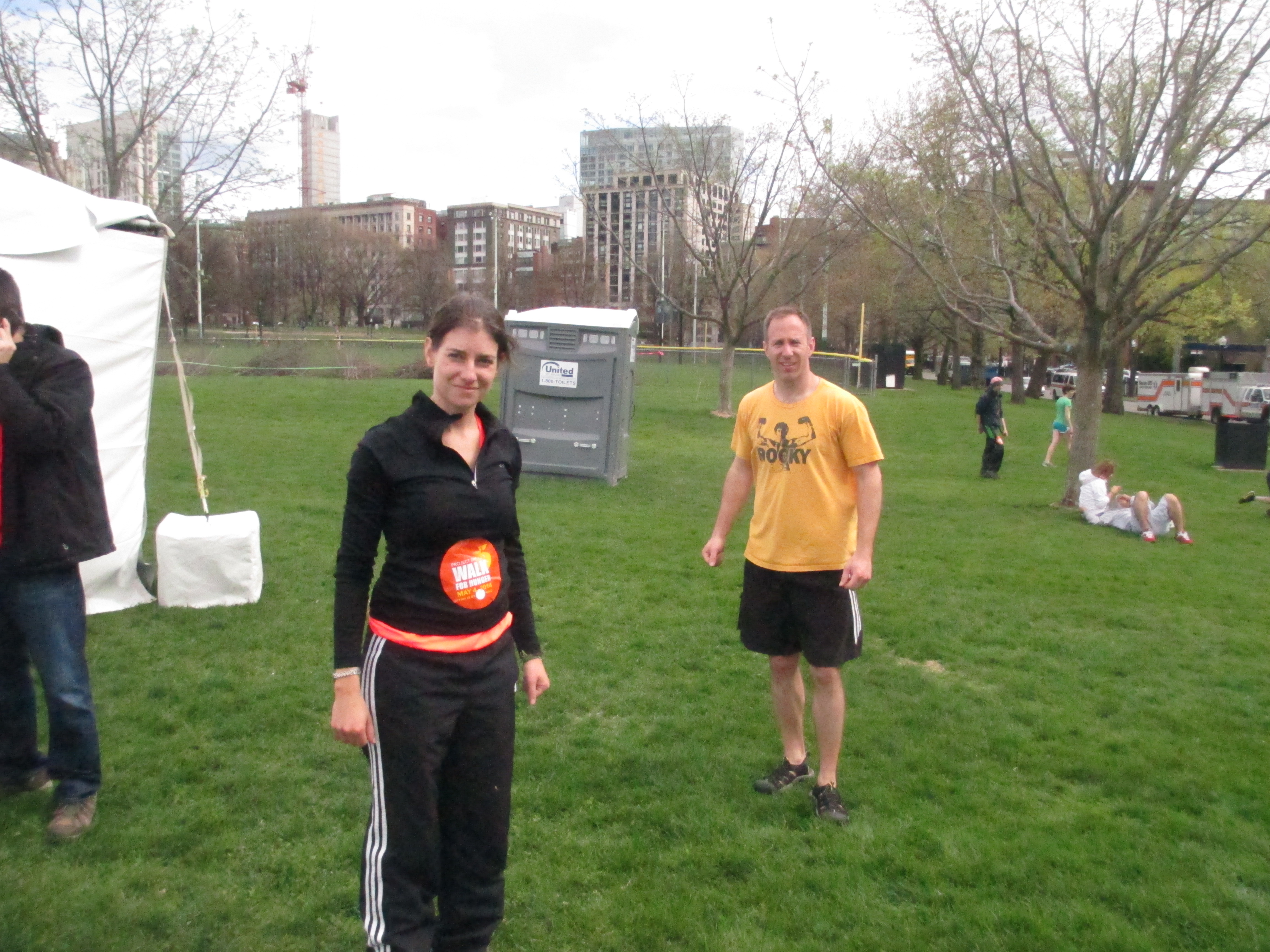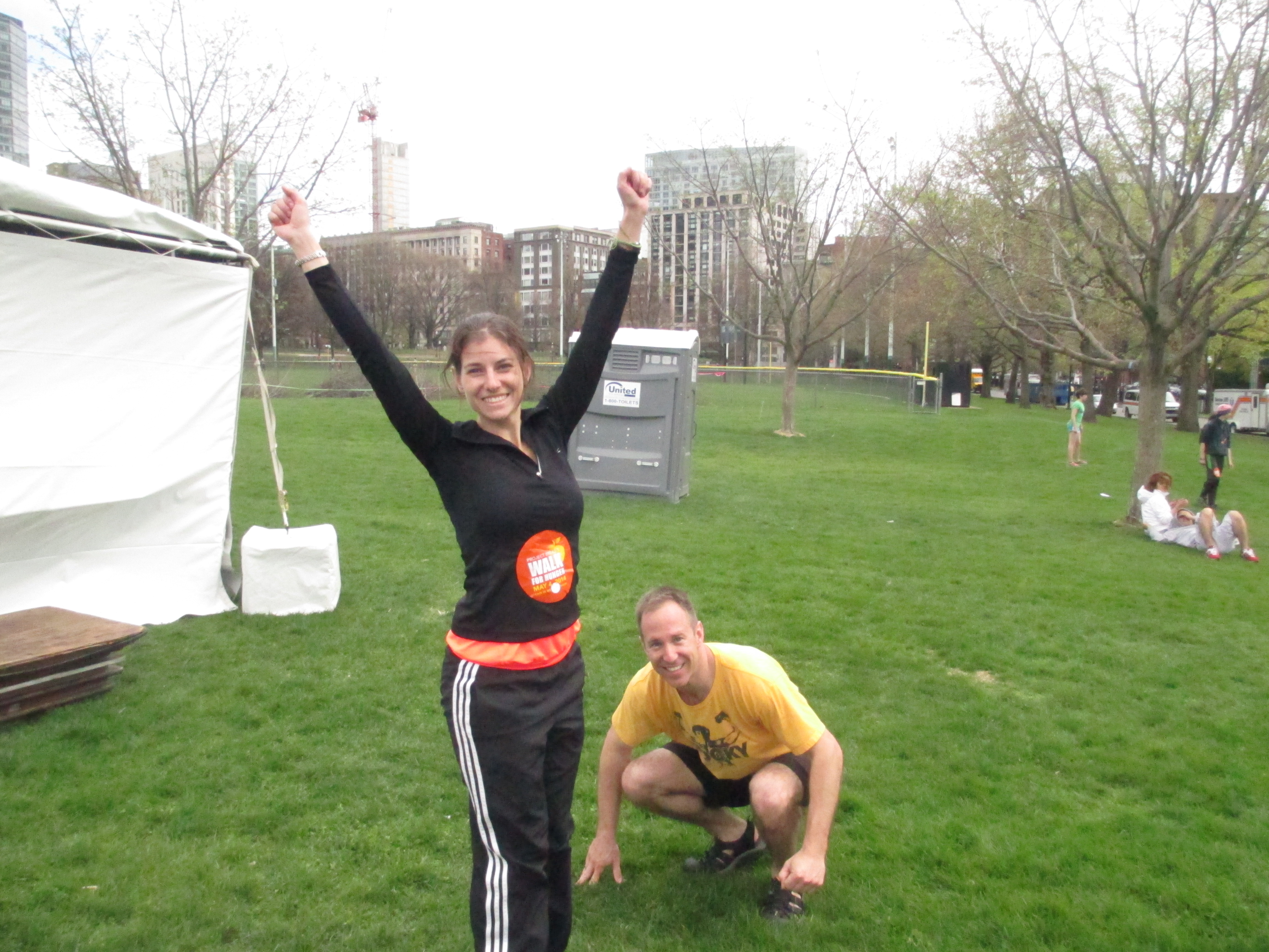 After finishing our 20 mile jaunt through Boston, my friend and I wanted to take a celebratory photo. M-dog* suggested a photo in which the both of us are jumping, so he asked his colleague to take a photo of us in jubilant airborne exultation.