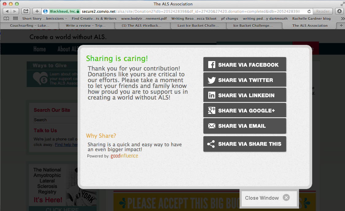 Don’t get me wrong: I think the movement is really awesome. I’m jazzed that awareness is spreading for ALS (although I’m not sure how deep the awareness extends—do people who make these videos even know what ALS stands for?)