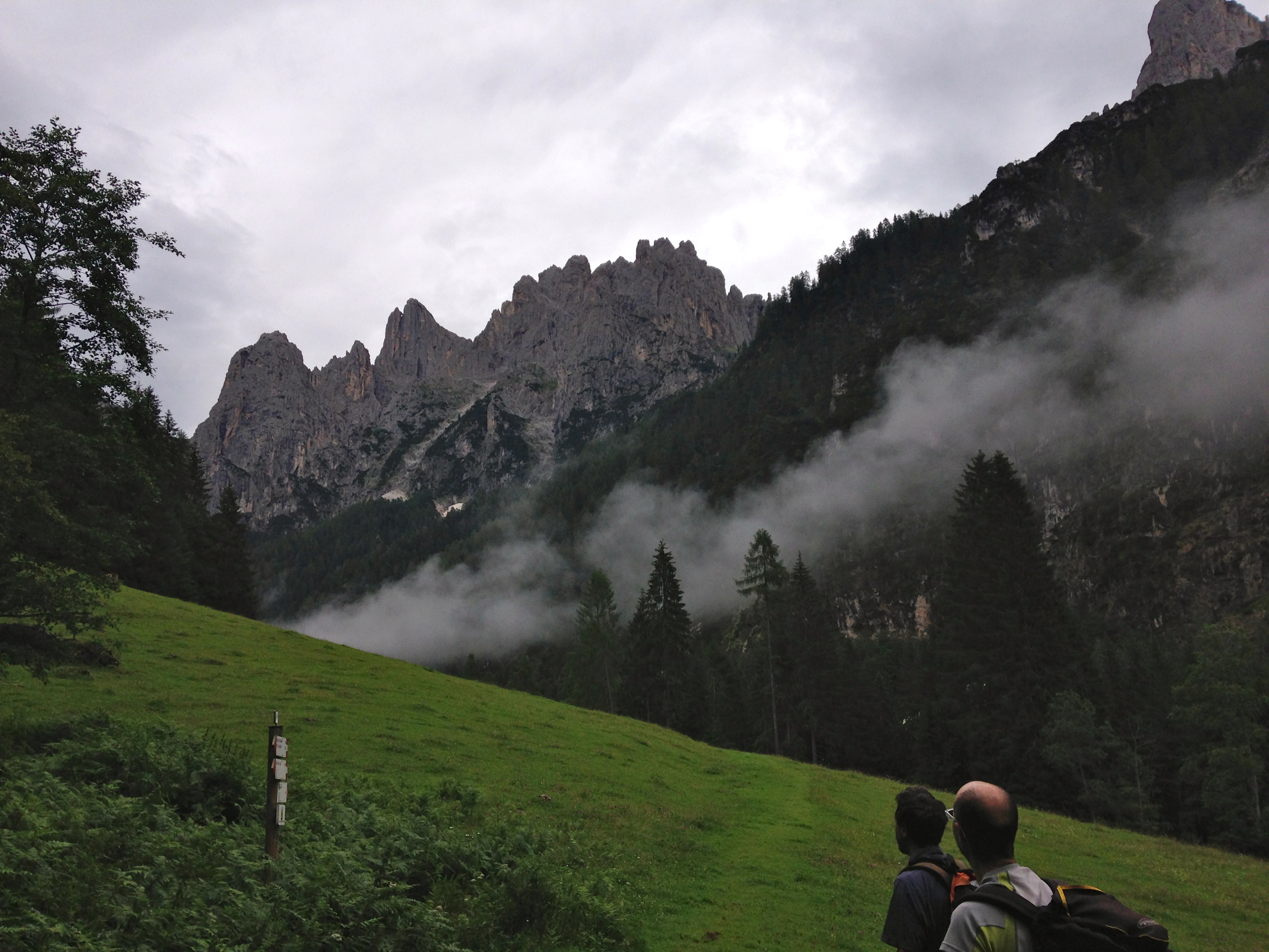 I arrived at the Feltre train station at 8:30am where Jacopo was waiting to pick me up. He reminded me of a New Hampshire guy I’d met once who was small and spritely, who wore patchwork fabrics and was interested in cold weather, hiking poles, and being vegetarian. I’m not sure that Jacopo shared those characteristics, but he had the same look. In any event, he was kind and so was his friend Alesseo, who met us at the station because he also wanted to hike and practice his English.