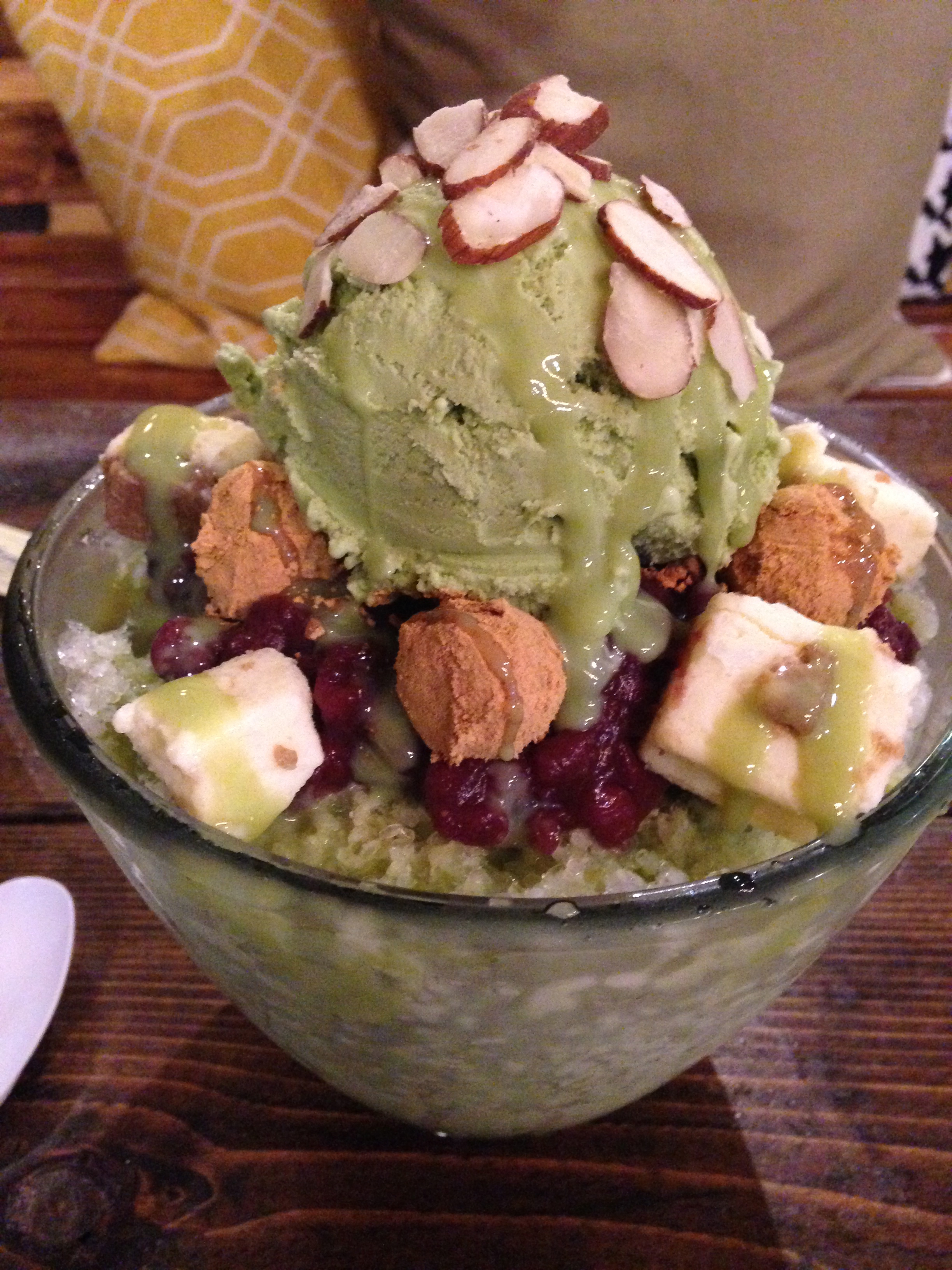 My dad visited Providence for the first time, and I made sure to take him through my most mundane activities. He got to see how I walk to work every day! and see where I get the best bubble tea! and see where I walk for two miles in order to arrive at a free beach in Newport! I took him to the Teriyaki House, and even though I often go to there for bubble tea, I’d never seen a Bing Soo before. As soon as I did, I HAD TO HAVE IT. There’s green tea ice cream, sliced almonds, mochi, cheesecake squares, red beans, shaved ice, and warm milk to pour on top. I posted pictures on Facebook and people were both intrigued and disturbed. I assure you it’s delicious.