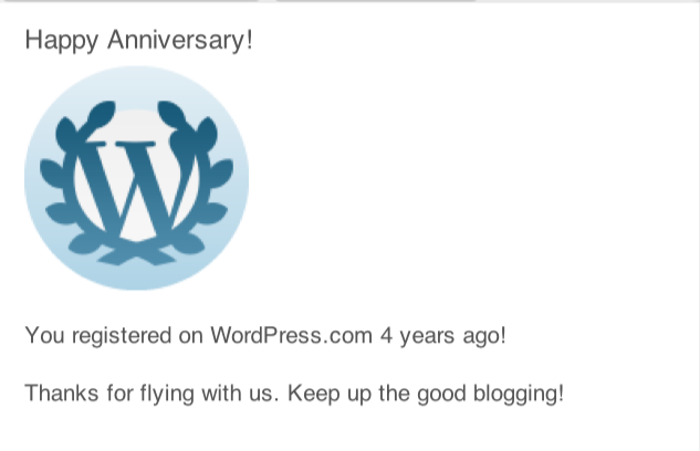 Last week(ish), on December 21st, I was notified by WordPress that it was my 4th Year Anniversary as a blogger.