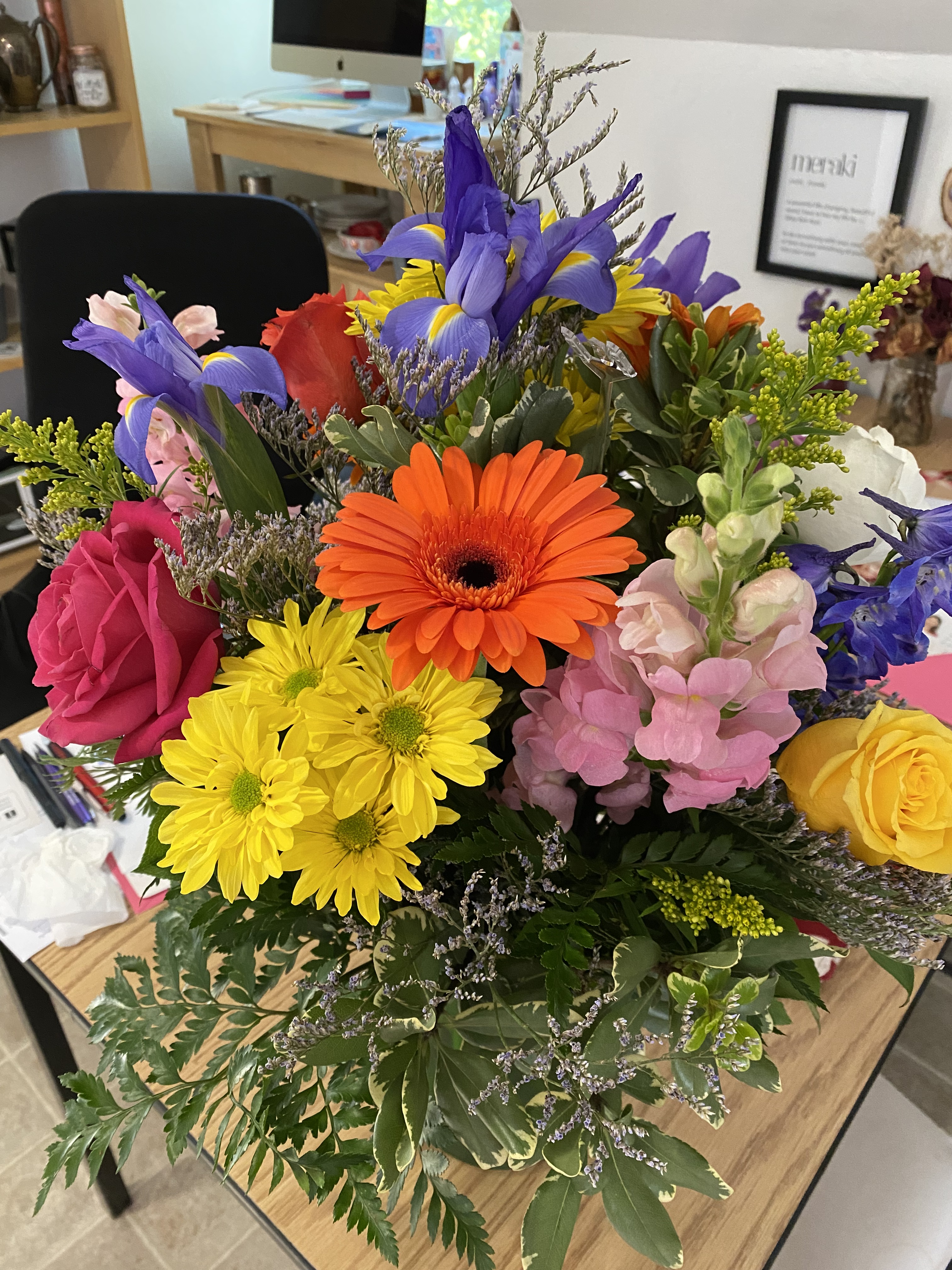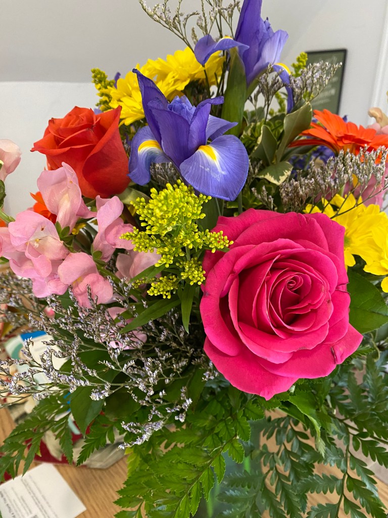 Friends cooked meals (or brought me Yoleni’s Greek food!), beginning the day I was discharged from the hospital, until now, nearly two weeks later. One of my friends and neighbors from church has checked on me every day, taking out my trash, doing dishes, washing my sheets, inviting me over once I could walk again. My pastor’s wife brought over essential items and trimmed my flowers, giving them new life, and hung my roses upside down to dry.