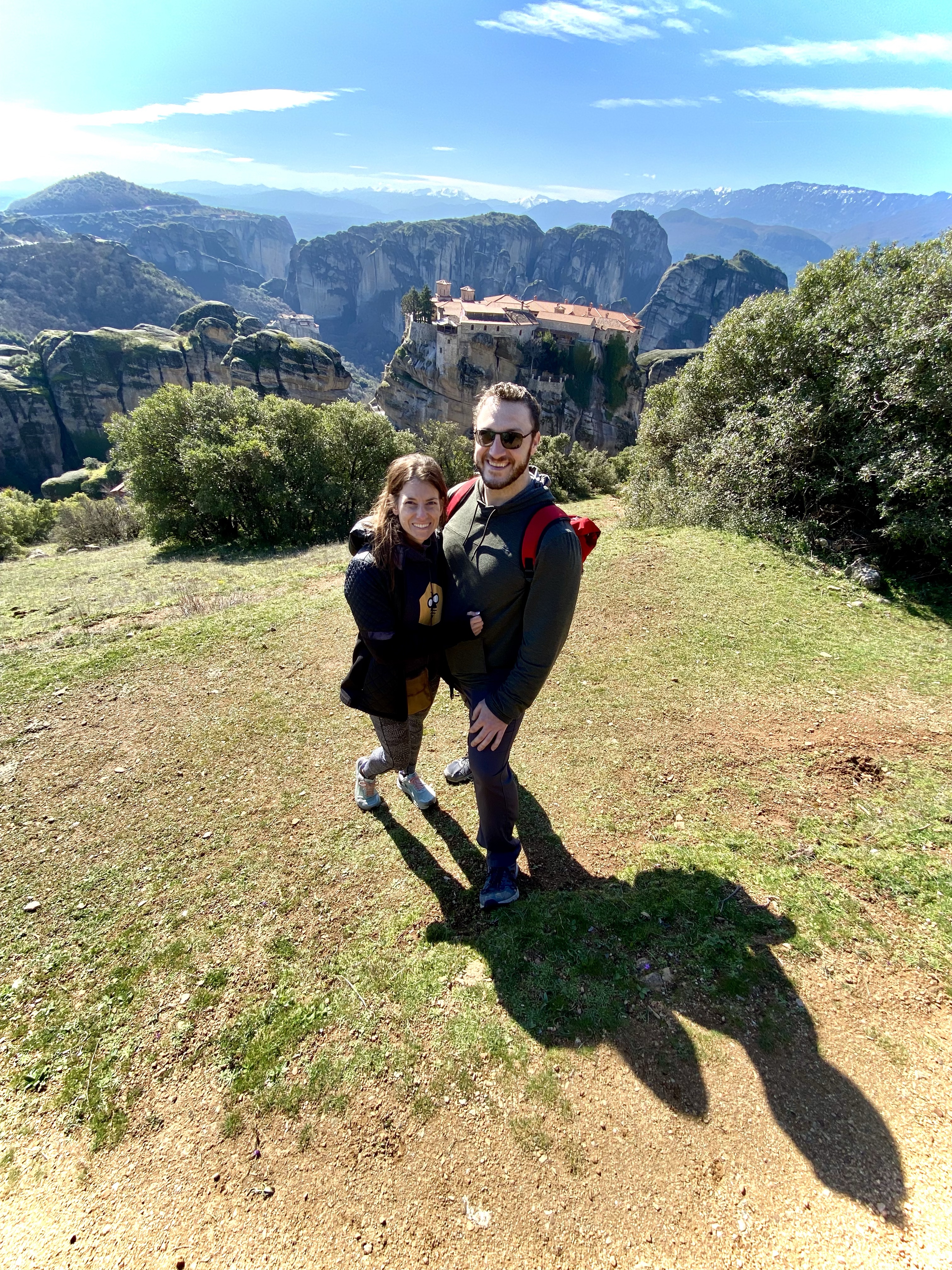 Therefore, we created a honeymoon itinerary based on getting to Nea Makri, a small town an hour northeast of Athens, while also visiting the opposite side of the country (I have to give a shout out to Juniper Tours, who did a stellar job in helping us). Our plan: fly into Thessaloniki and spend a couple of days there, walking along the promenade enjoying the best bougatsa in the land; drive down to Kalambaka and hike to the clifftop monasteries of Meteora; spend a week in the picturesque mountain villages of Pelion, where centaurs are said to have roamed; then drive through Nea Makri en route to Athens, stopping for a couple of hours at the monastery, before concluding our trip in the capital.