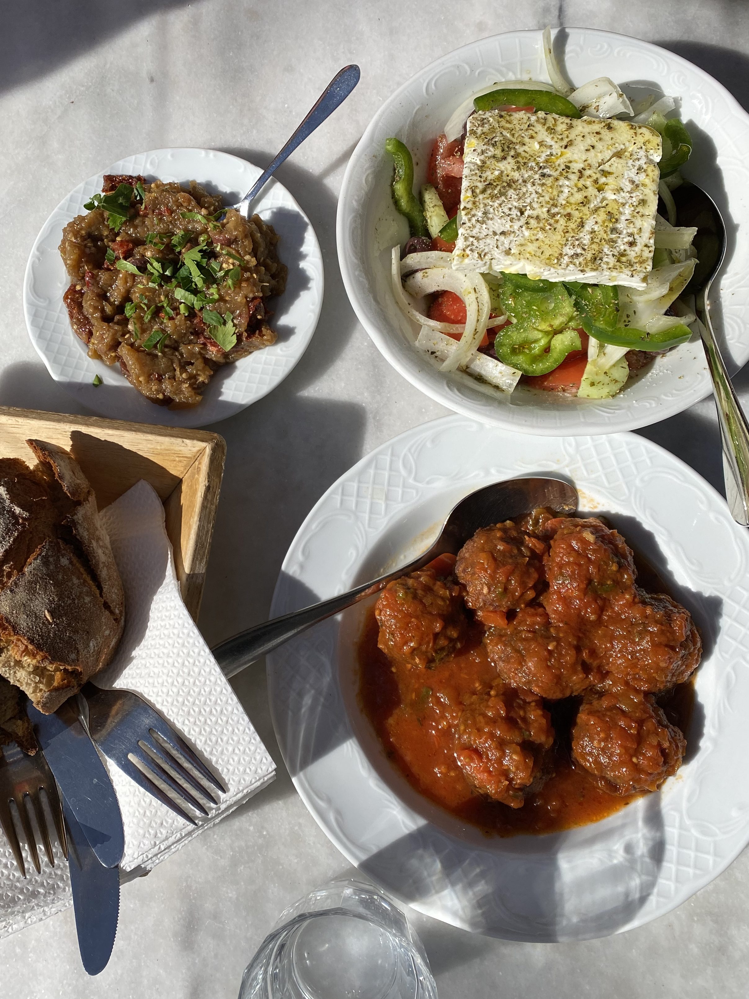 Before leaving to Greece for our honeymoon, we asked our Greek community for recommendations in our destinations, and it was recommended that we visit an ouzeri. I wasn’t exactly sure what that meant, but it turns out, with each round of ouzo (or in my case, tsipouro), they bring out plates of mezedes – the Greek version of tapas.