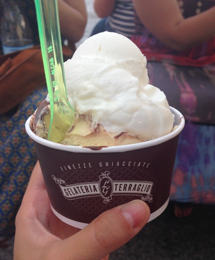 The following day, a Friday, as I wandered the streets of downtown Bassano, I ran into Niusha and some of her friends from the night before. I joined the crew, and—in true angelic fashion—her mom treated all of us to gelato from the best gelateria in the world. We all took sample spoonfuls of each other’s flavors to maximize the experience. Niusha ordered basil mint, which I would have never ordered for myself, and found it delightfully creamy and refreshing, not too overpowering for either flavor but a masterful blend of both. I still stand by my choice, however; panna semifreddo is the best of the best.