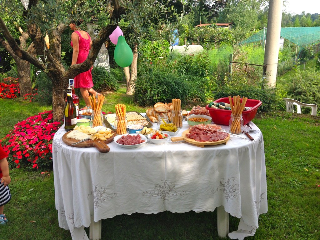 The Italians did not arrive to a party empty-handed, however, especially when it came to food. They provided antipasto—all my most favorite cheese and charcuterie with breadsticks, and of course, wine and Aperol Spritzes.