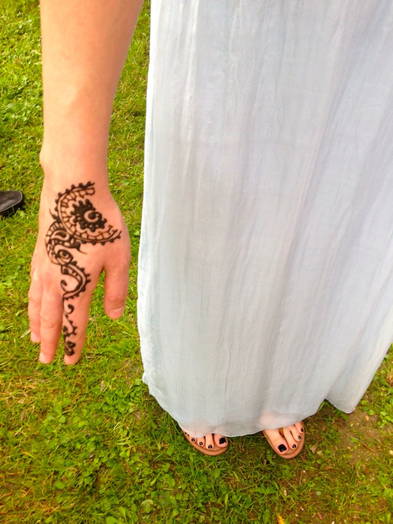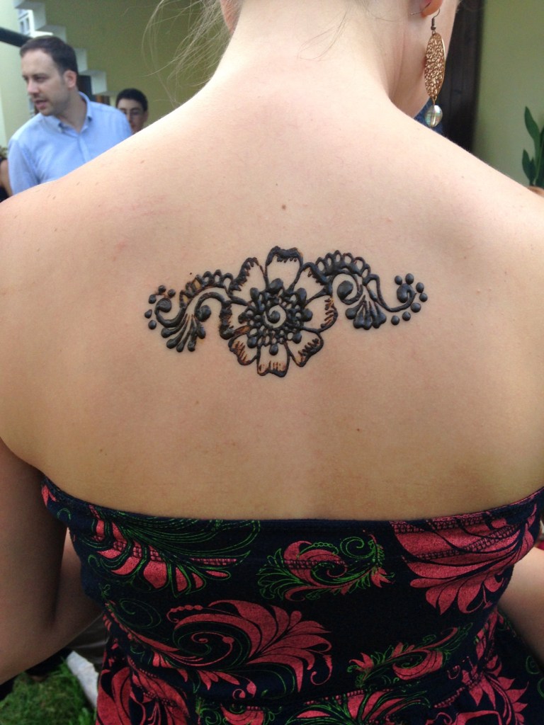 Niusha’s friends and family spoke English, and they kindly did so anytime I was in earshot so I could be included. The first part of the evening, we took turns sitting with a Henna tattoo artist, choosing our design and its location in preparation for the wedding. I got a hibiscus flower on my forearm because it reminded me of Hawaii. Everyone got something different.
