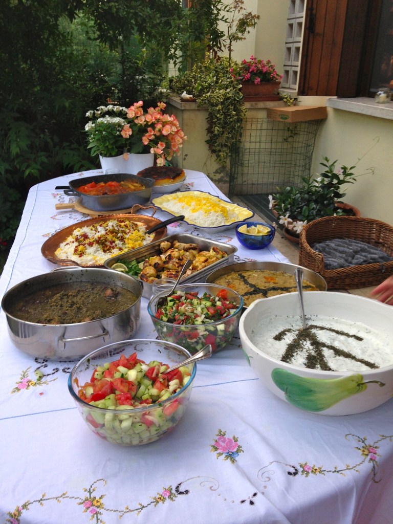 Then there was the food, the homemade Persian food I’d come to love so much: fragrant saffron rice, slow-cooked herb stews, stews of pomegranate and walnut, charcoal grilled chicken, bright salads of cucumber and tomatoes, dill and fava bean rice, yogurt dipping sauce topped with fresh herbs.